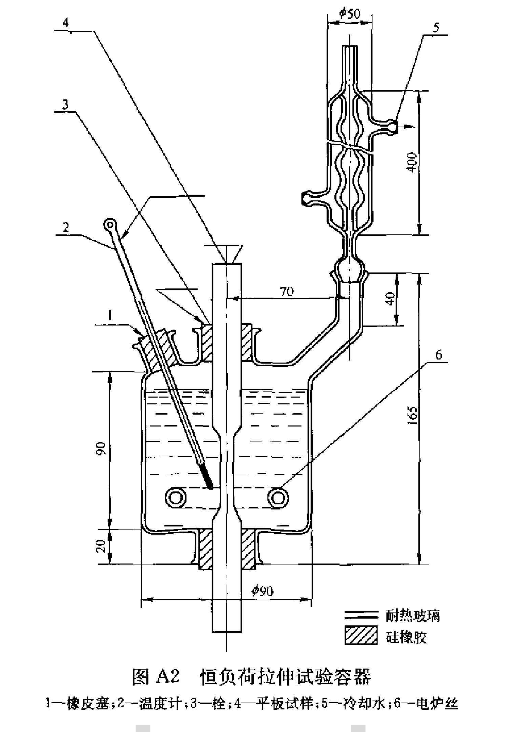 試樣方法概述:1)將預定的試劑級質(zhì)量的氯化鎂和一些蒸餾水加入一個容器中。含有試劑的容器裝上溫度計和冷凝器,放置在熱源上加熱。當氯化鎂溶液沸騰時通過添加少量水或鹽調(diào)整以維持規(guī)定的濃度和沸點。2)溶液已穩(wěn)定在試驗要求的沸點后,加入應(yīng)受力的試樣。根據(jù)試驗示意圖,試樣要周期性檢齊。如果試驗過程超過7天,溶液要更換或建議采用相似的試驗裝置。