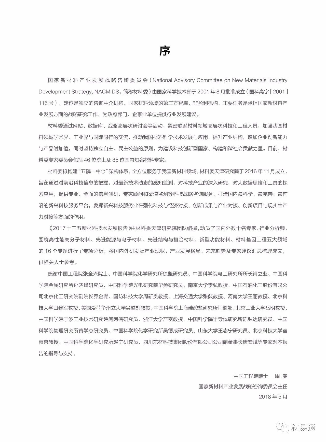 國家新材料產業發展戰略咨詢委員會(National Advisory Committee on New Materials Industry Development Strategy, NACMIDS)由國家科學技術部于2001年8月批準成立(國科高字【2001】116號),其定位是獨立的咨詢中介機構、國家材料領域的民間智庫、非盈利機構,其主要任務是承擔國家新材料產業發展方面的戰略研究工作,為政府部門提供行業發展的科技建議,編寫、發布新材料各領域的產業評述報告及新材料發展的年度報告。